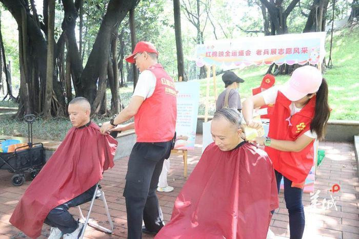 活动前一场突如其来的暴雨,并未浇灭红棉老兵们志愿服务的热情。“我向退役军人志愿者发出最诚挚的倡议:请整装,再出发!让我们化身一只只‘小海豚’,一起为赛事‘护航’。”活动上,退役军人代表、第十届全运会运动员陈穗之如是说。